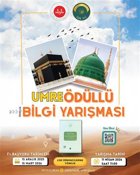 Gençlerin sahih dinî bilgi ve manevi değerlerle donanacağı Umre Ödüllü Gençlik Bilgi Yarışması başvuruları 15 Aralık’ta başlıyor. Kaybedeni olmayan bu anlamlı yarışmaya tüm liseli ve üniversiteli gençlerimizi davet ediyoruz.