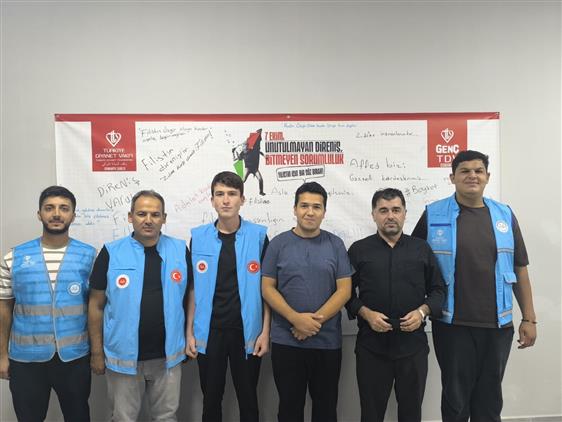 Cebeli Bereket KYK Erkek Öğrenci Yurdu’nda kalan üniversiteli öğrenciler, manevi danışmanlar eşliğinde Genç TDV Kadın Birimi tarafından hazırlanan “Filistin Duvarı” etkinliğine katılarak Filistin halkına destek verdiler.